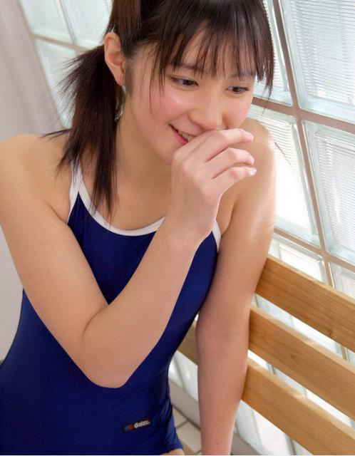 スク水姿もウブな雰囲気。目がクリっとしてカワイイです。
